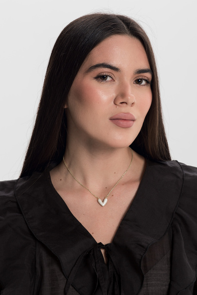 - Ланцюжок виконаний у класичному стилі з поєднанням золотистого та білого кольорів, що створює ніжний та привабливий вигляд.