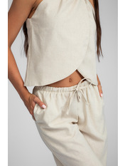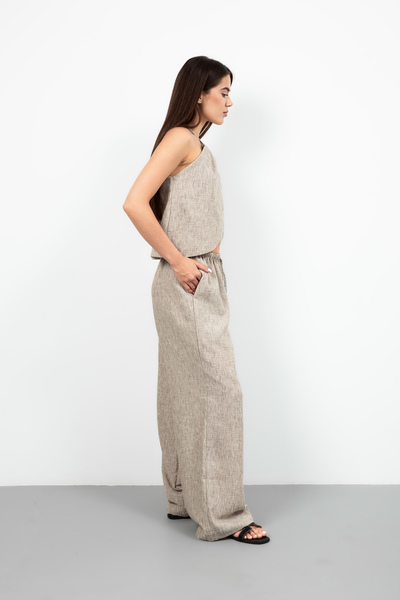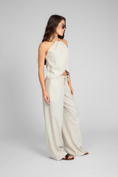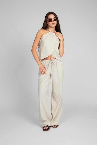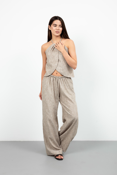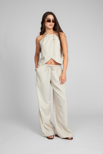 Цей елегантний літній костюм, виконаний з високоякісного льону, є втіленням комфорту та стилю.