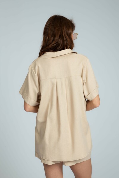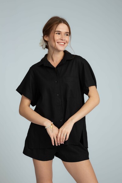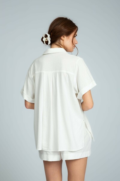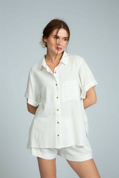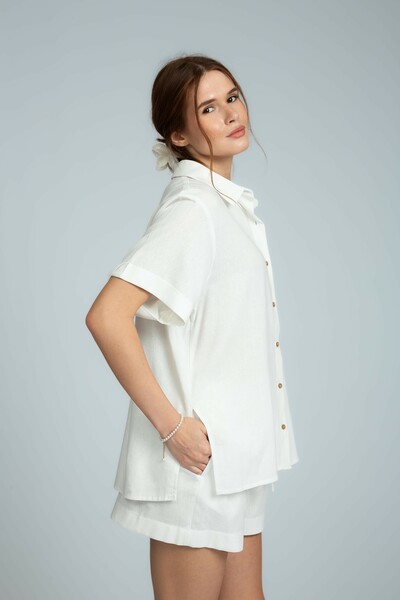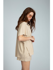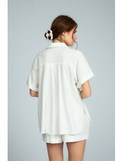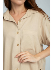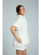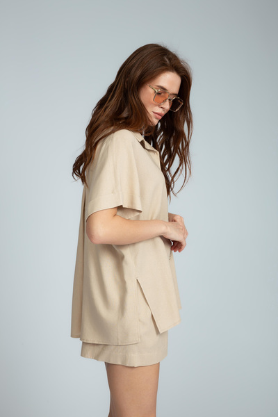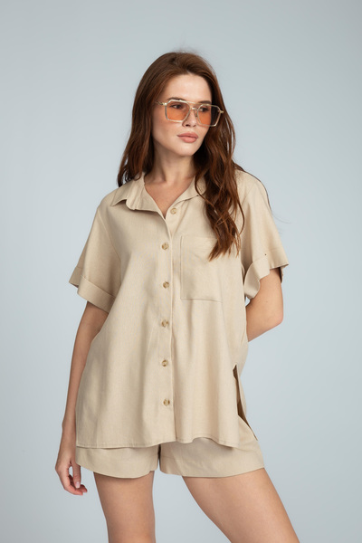 Костюм складається з вільної сорочки та штанів, що створює гармонійний та вишуканий образ. Сорочка вільного крою додає легкості та невимушеності, а штани забезпечують зручну посадку. Цей дует ідеально підходить як для повсякденного носіння, так і для створення елегантних літніх образів.