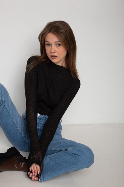 Класичний чорний лонгслів з круглим вирізом - основа базового гардероба.