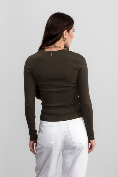 Універсальність: Однотонний декор дозволяє легко поєднувати лонгслів з різними елементами гардероба, створюючи як повсякденні, так і більш елегантні образи.