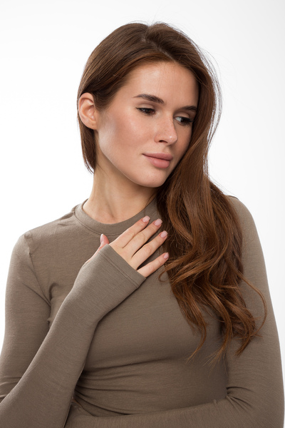 Лонгслів, виготовлений з 92% віскози та 8% еластану, є ідеальним вибором для весняно-осіннього сезону.