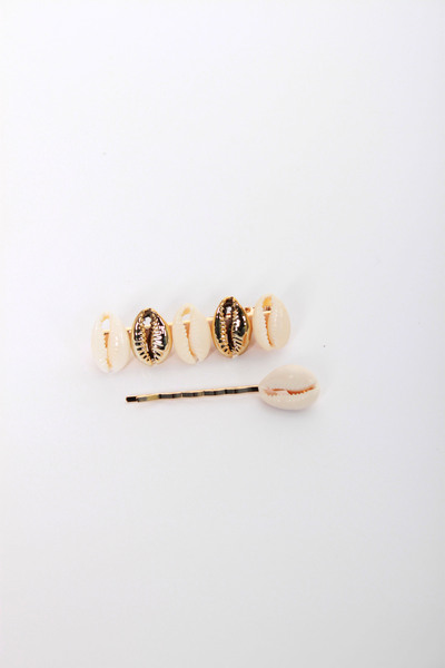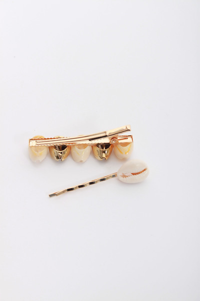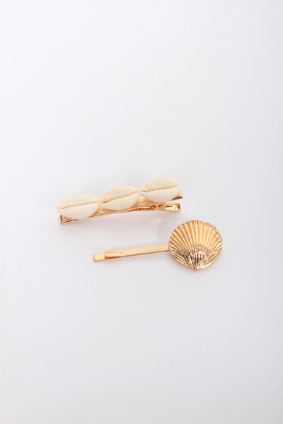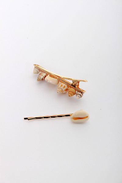 Набір з двох металевих заколок. Проста невидимка з однією мушлею, шпилька-зажим з декількома мушлями. Цей аксесуар допоможе тобі створити оригінальну зачіску всього за декілька хвилин!