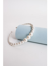 Стильний обідок з перлами. Металевий обруч обтягнутий штучними перлинами різних розмірів, м'які нашивки біля основи. Аксесуар чудово доповнить святковий і навіть весільний образ!