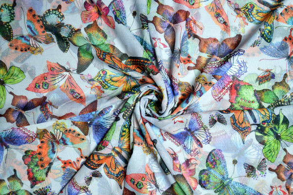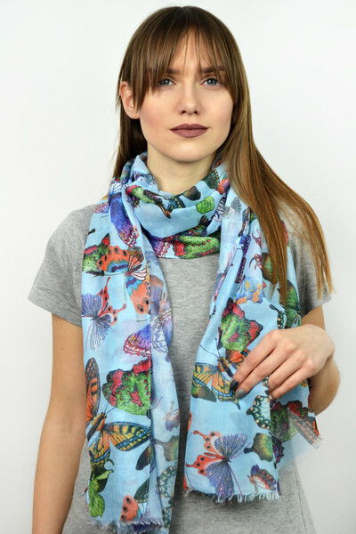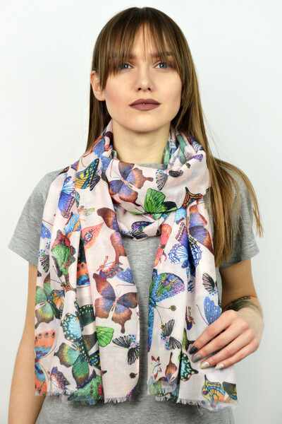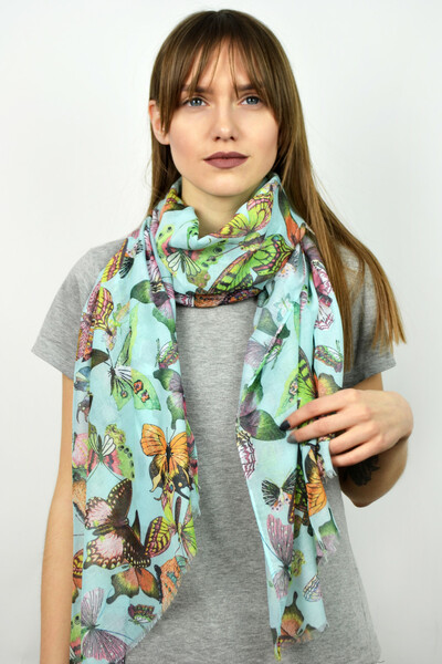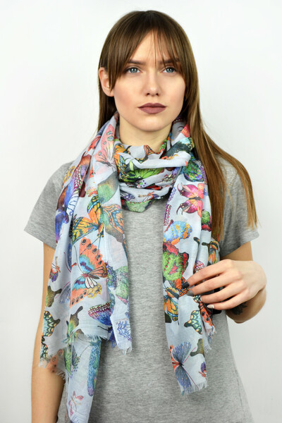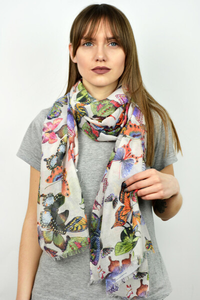 Яскравий палантин з весняної колекції. Контрастний дизайн з метеликами, необроблені кромки. М'який напівпрозорий матеріал, який захистить від прохолодного вітру. Обирай колір і замовляй!
