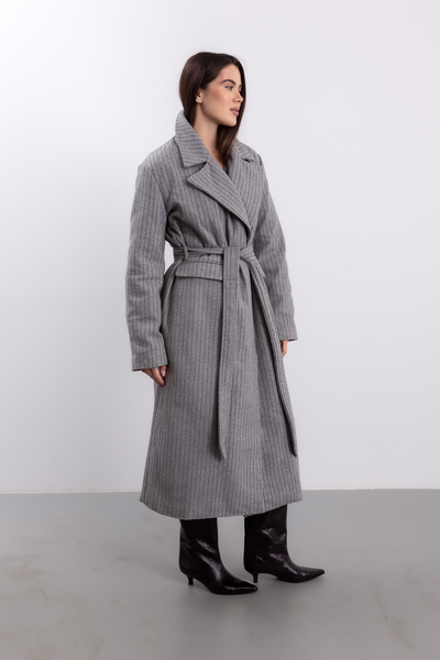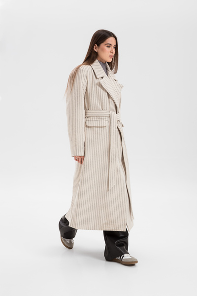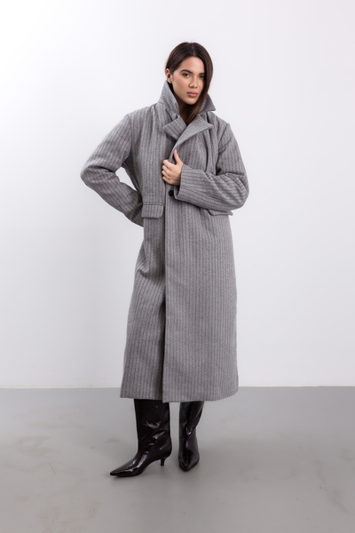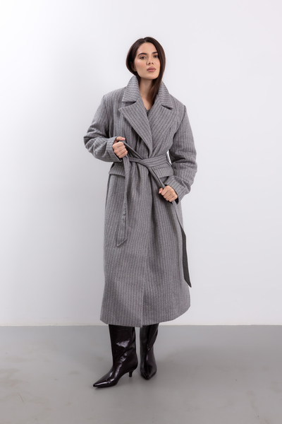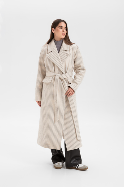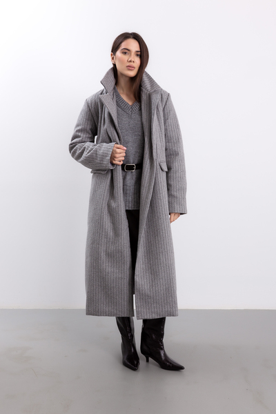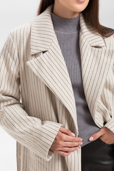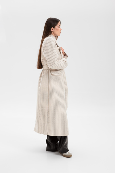 Пальто в смужку KAR-585 - це стильний об'єкт моди, який додасть елегантності вашому осінньому гардеробу.