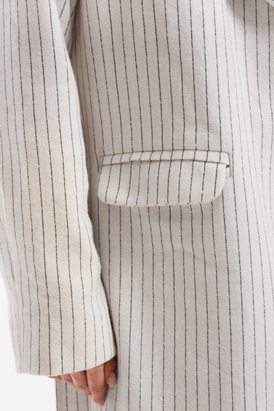 Сміливий смужковий візерунок створює динамічний образ, а класичний крій робить його універсальним для різних випадків, будь то офісна зустріч або вечеря з друзями.Переваги: