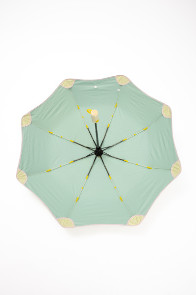 - Колір: Ніжний блакитний колір створює відчуття свіжості та легкості, роблячи парасолю привабливим доповненням до будь-якого образу.