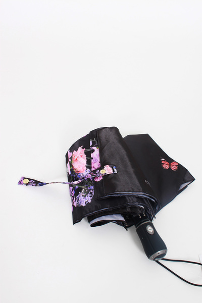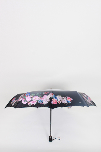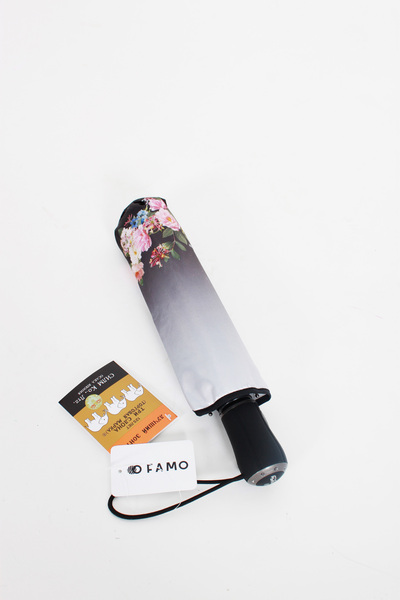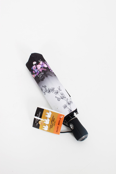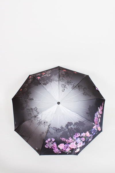 Складана жіноча парасолька автомат. Оригінальний дизайн з градієнтним переходом від центру і дрібним квітковим принтом по краях. Водонепроникний купол, сталевий корпус, 9 сталевих спиць, пряма гумована ручка. Система "антивітер" для комфортних прогулянок. Обирай парасольку, яка до душі!