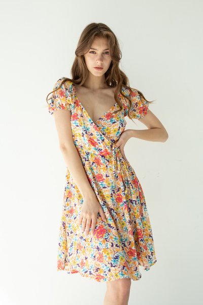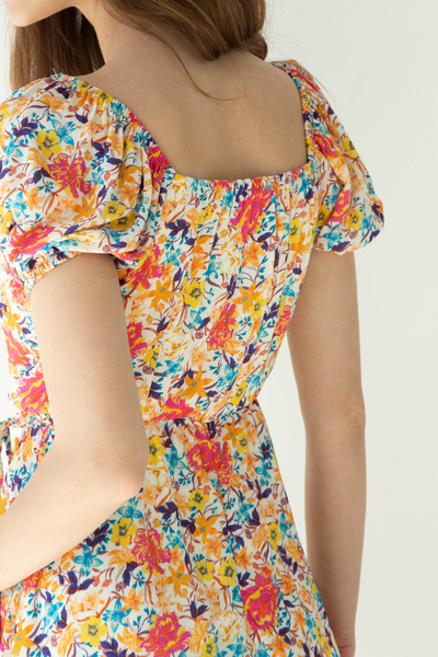 Сукня міні з віскози з короткими рукавами PLA-0877