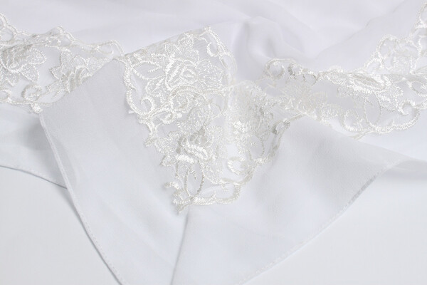 Шифонова хустка для урочистих подій. Однотонний дизайн з мереживними вставками та акуратними кромками. Зручна, не спадає з голови і добре фіксується. Те, що ти так довго шукала!