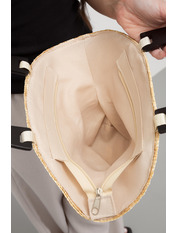 - Дві короткі ручки з імітації шкіри, що забезпечують зручне носіння в руці або на лікті.