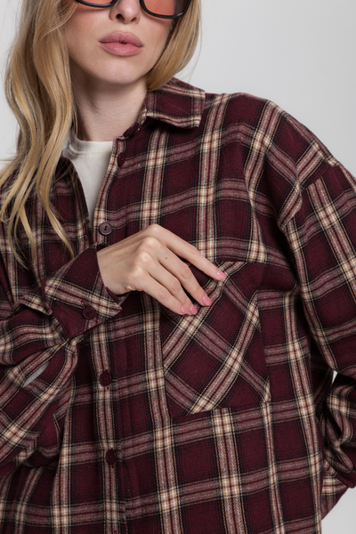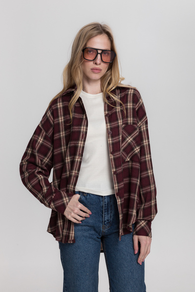• Сорочка в клітинку  RA-284 XS/S Бордовий Бордовий + бежева клітинка Бордовий + бежева клітинка XS/S