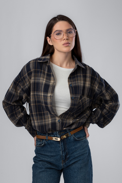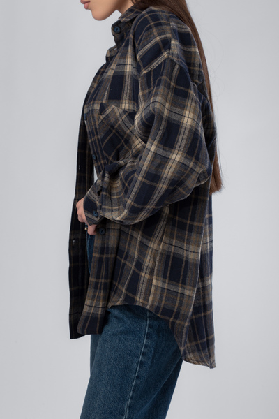 • Сорочка в клітинку  RA-284 M/L Синій Синій + бежева клітинка Синій + бежева клітинка M/L