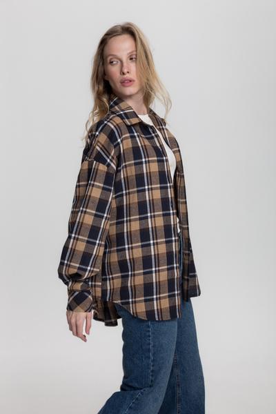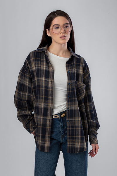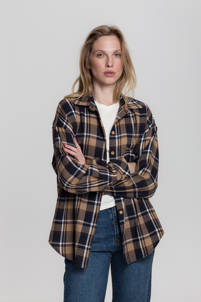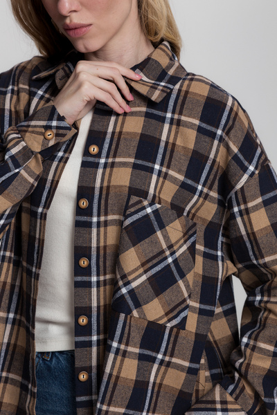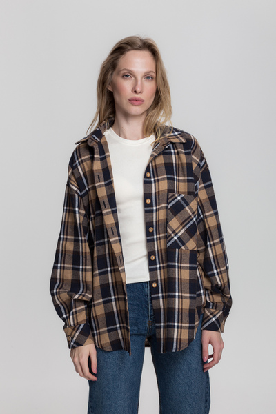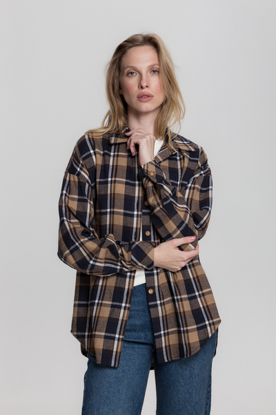 • Сорочка в клітинку  RA-284 M/L Бежевий Бежевий + синій Бежевий + синій M/L