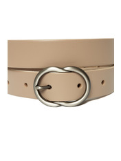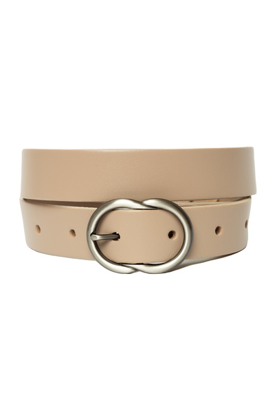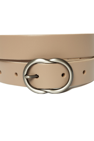 - Класична металева пряжка світлого відтінку з легкою глянцевою текстурою.
