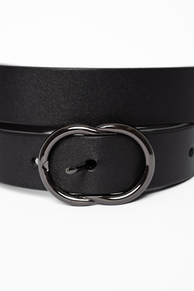 - Стильна металева пряжка в класичному дизайні, що надійно фіксує ремінь.