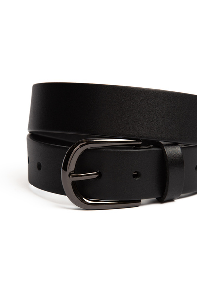 - Надійна фурнітура: Міцна металева пряжка класичної форми надійно фіксує ремінь на талії.
