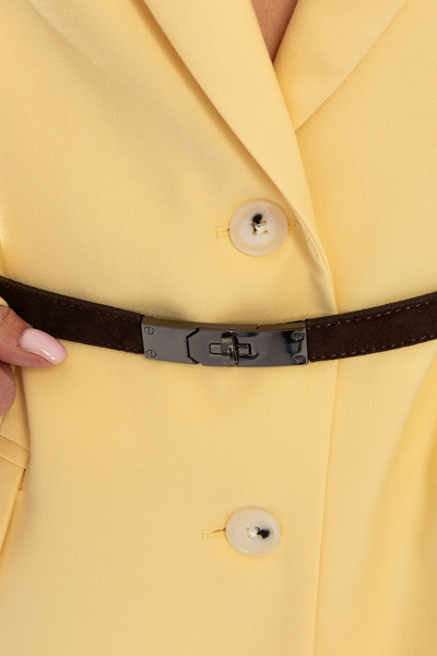- Стильна пряжка з металу, що додає сучасного вигляду та надійно фіксує ремінь.