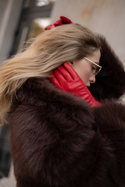 - Яскравий червоний колір додає нотку стилю, роблячи рукавиці універсальними для повсякденного та святкового носіння.