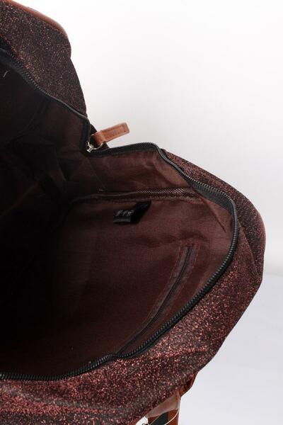 Рюкзак з люрексом для міських прогулянок. Велике основне відділення на блискавці, внутрішні і зовнішні кишені. Верхня ручка і шлейки з еко-шкіри. Довжина лямок регулюється. Якісне пошиття, тканинна підкладка. Купити рюкзак можна в роздріб та оптом