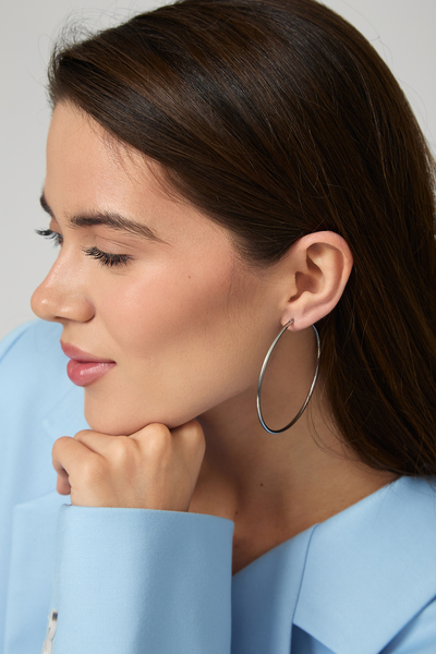 Країна виробник Китай Склад Медичний сплав Сезон Всі сезони Форма сережок Масивні Тип сережок Кільця, півкільця Колір Сріблястий -