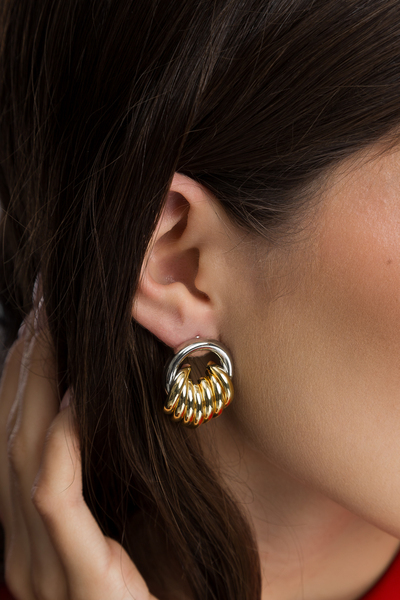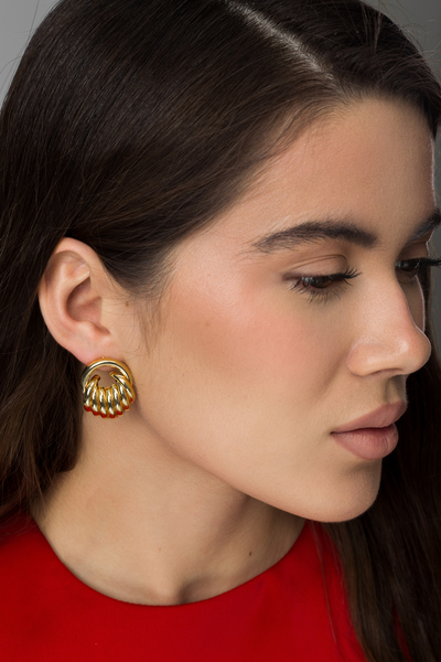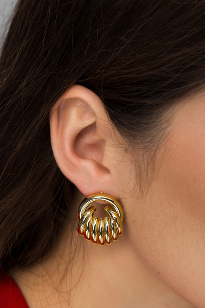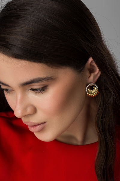 - Сережки мають оригінальну фігурну форму, що надає їм унікальності та привертає увагу, з золотистим відтінком, який додає теплоти та розкоші.