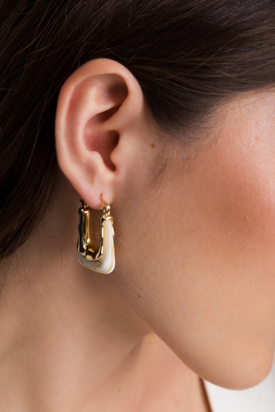 - Фігурна форма сережок SER-97 з золотистим відтінком створює ефектний акцент, роблячи їх помітними, але не перевантаженими.