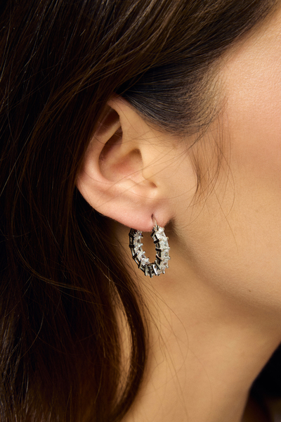 Масивна форма сережок надає їм вишуканості, а дизайн у вигляді кілець додає універсальності, що дозволяє вдало поєднувати їх як із класичними, так і з повсякденними образами. Ідеальний вибір для тих, хто цінує вишуканий стиль і якість.