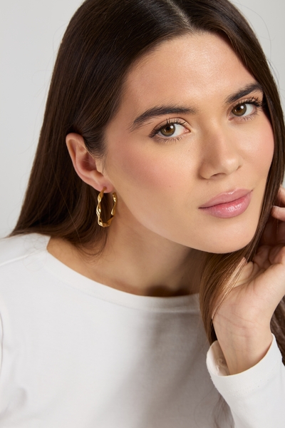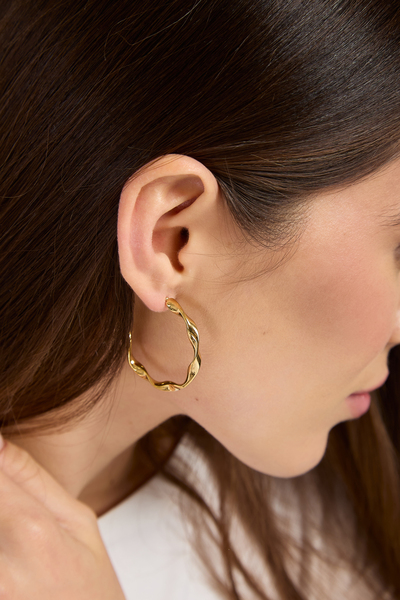 - Cережки виконані у формі витончених півкільць середнього діаметру, завдяки чому виглядають гармонійно як з повсякденними речами, так і з вечірніми вбраннями.