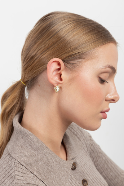 Сережки-пусети SER-13279 — це стильний та мінімалістичний аксесуар, створений для доповнення будь-якого образу. Їх елегантна форма у вигляді чотирилистника надає вишуканості. Виготовлені з титанової сталі, ці сережки чудово поєднують стиль та довговічність, забезпечуючи комфорт у носінні.