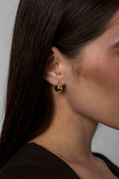 - Сережки виконані у компактній формі пусетів з золотистим покриттям, що надає їм делікатного блиску та універсальності для різних стилів.