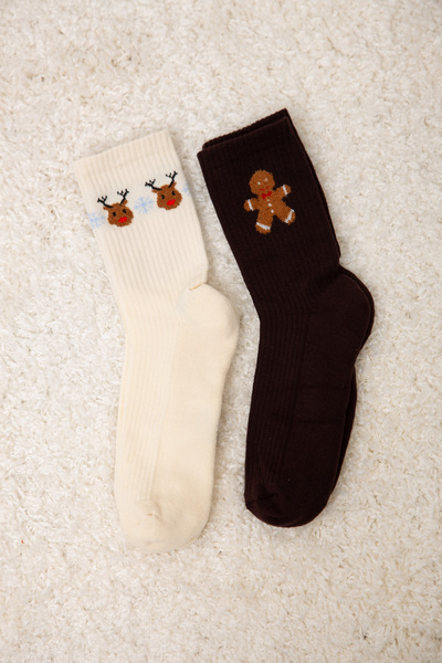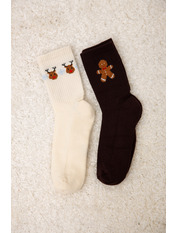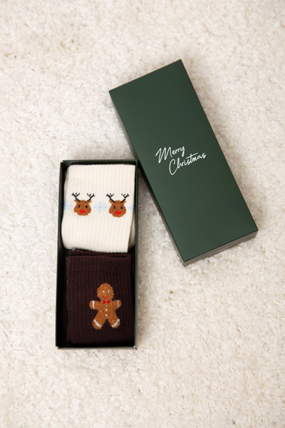 - Набір включає кілька пар шкарпеток з яскравими новорічними принтами – ялинки, сніжинки та інші святкові мотиви в різнобарвній гамі, що додасть вашому образу веселість і святковості.