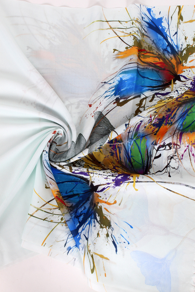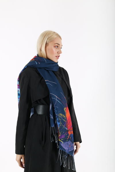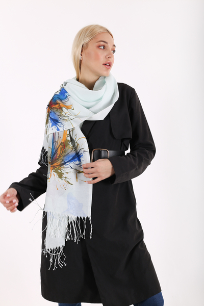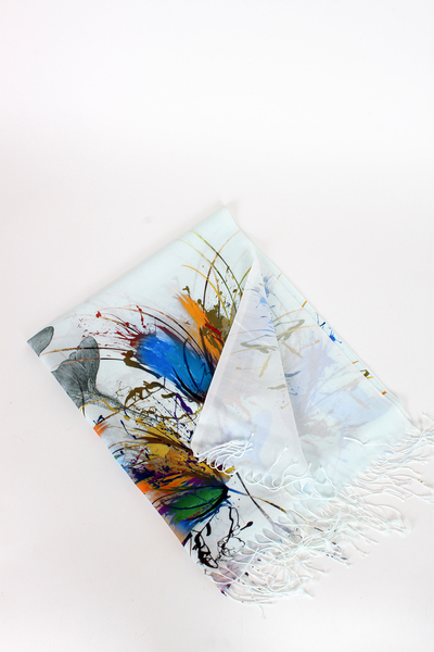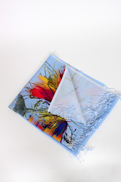 Ніжний весняний шарф з тасьмою. Однотонний дизайн з абстрактною акварельною квіткою. Легкий і приємний матеріал. Модель чудово доповнить пальто, куртку або кейп. Купити шарф можна прямо зараз.