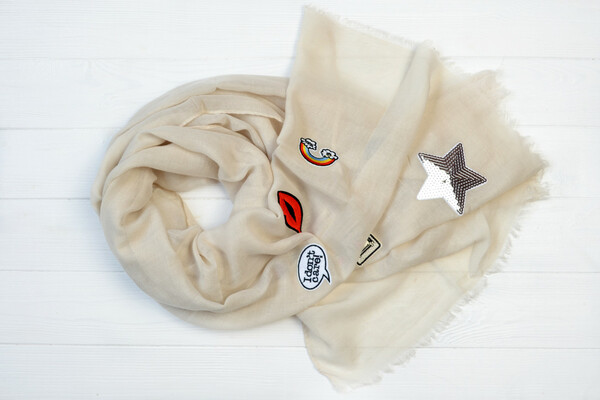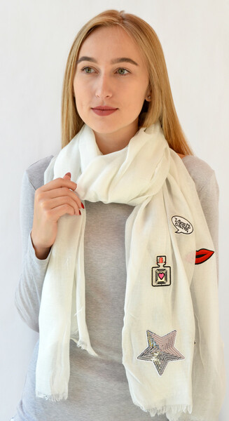 • Однотонний шарф з нашивками. Оригінальний дизайн для осінньо-весняного сезону. Необроблені кромки, легкий напівпрозорий матеріал віскоза. Об'ємний, його можна носити як снуд або хустку. Цей аксесуар точно вкраде твоє серце!