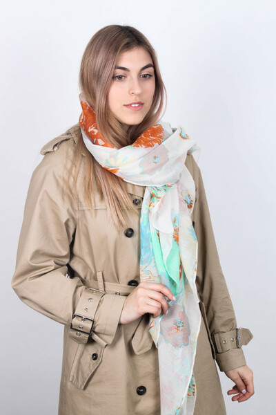 Шарф з віскози сезону весна-літо. Легкий і напівпрозорий матеріал, акуратні кромки. Яскравий квітковий дизайн, який ідеально пасуватиме до пальто або тренчу. Купити шарф можна прямо зараз!