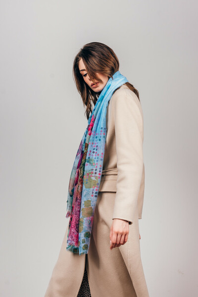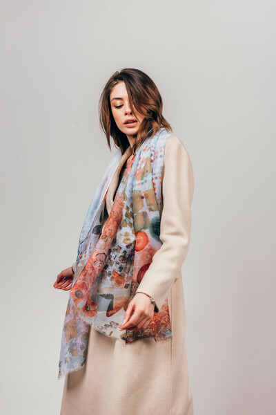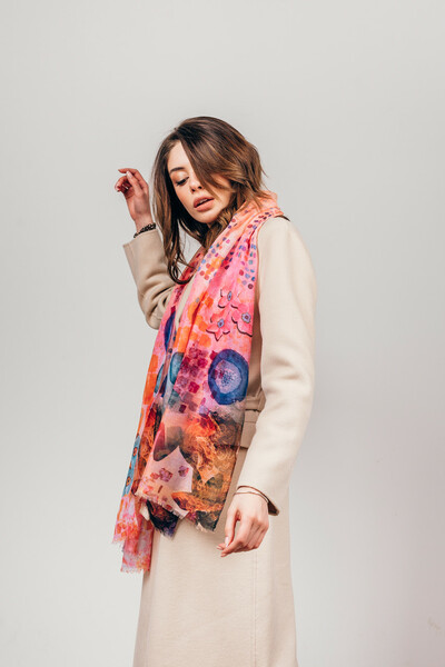 Жіночий шарф для прохолодної пори року. Контрастний абстрактний дизайн з необробленими краями. У складі є шовк, тому тканина м'яка і приємна до тіла. Шарф чудово доповнить пальто, тренч або куртку. Обирай колір і замовляй!