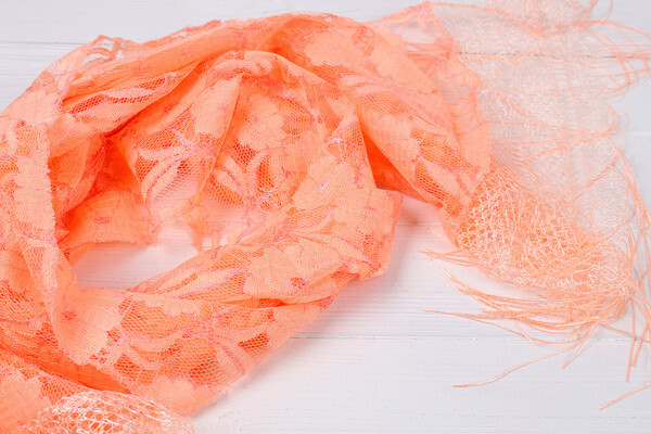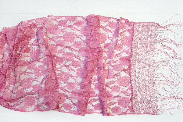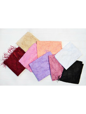 Легкий жіночий шарф для особливих випадків! Напівпрозора м'яка тканина, квітковий принт, краї прикрашені ніжним мереживом і бахромою. Яскравий аксесуар для вінчання, служби в церкві або хрестин. Як тобі?