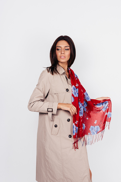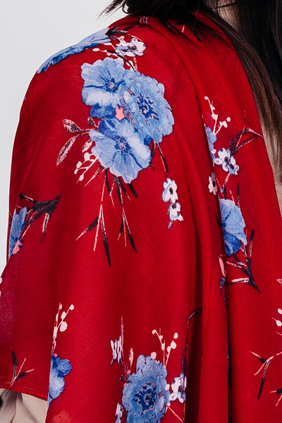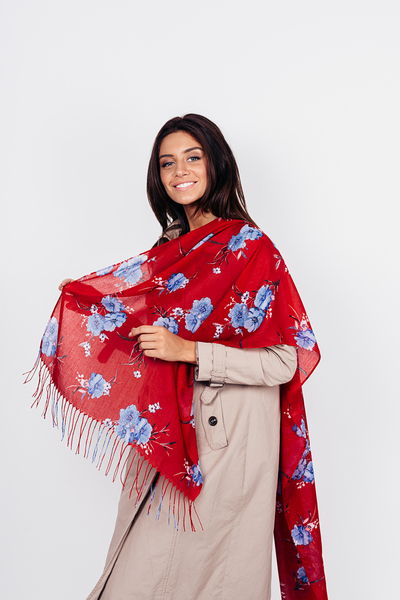 Легкий шарф з віскози. Яскравий дизайн з великим квітковим принтом і краями, прикрашеними бахромою. Приємний на дотик і м'який матеріал. Аксесуар захистить від прохолодного вітру і подарує комфорт. Ідеальний для твого гардероба!