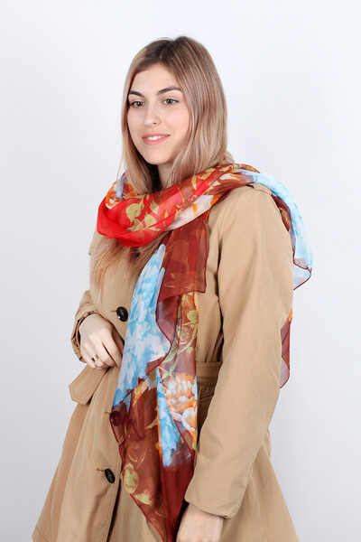 Легкий шарф - must have твого гардероба. Яскравий квітковий принт, гладка і напівпрозора тканина, у складі штучний шовк. Оптимальний розмір. Замовляй!