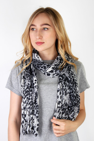 Легкий шарф сезону весна-осінь! Крутий дизайн з черепами і тигровим принтом, тканина зі складками. Його можна носити з косухою або пальто, головне пам'ятати про поєднання кольорів і матеріалів. Обирай!