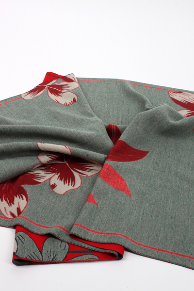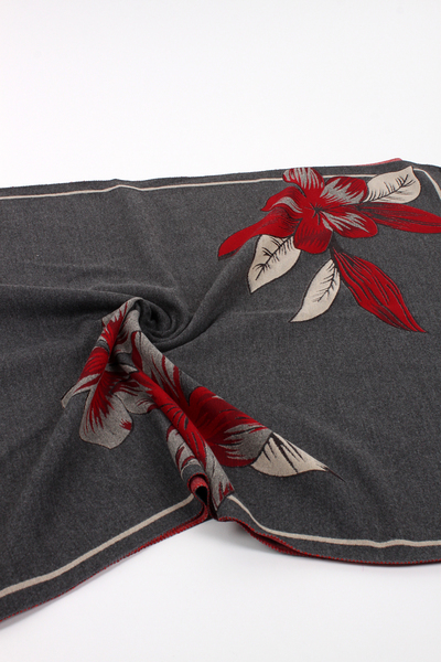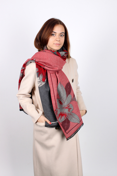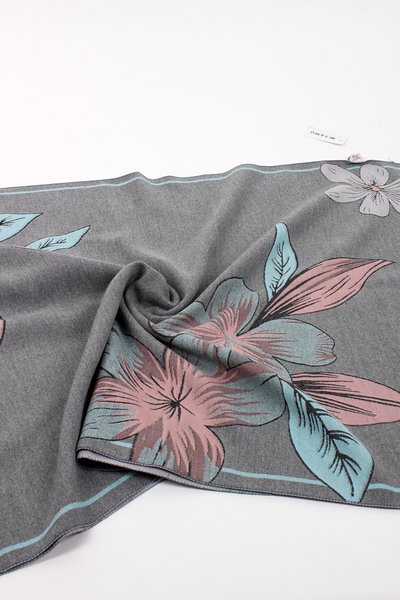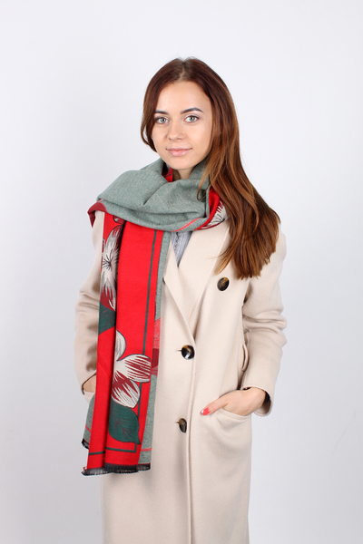 Кашеміровий шарф для холодної пори року. Двоколірний дизайн з великим квітковим принтом. Необроблені контрастні кромки. Об'ємний шарф, який чудово затримує тепло і захищає від будь-яких морозів. Обирай улюблений колір і замовляй!
