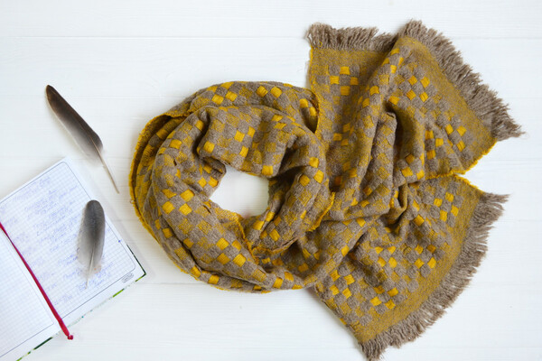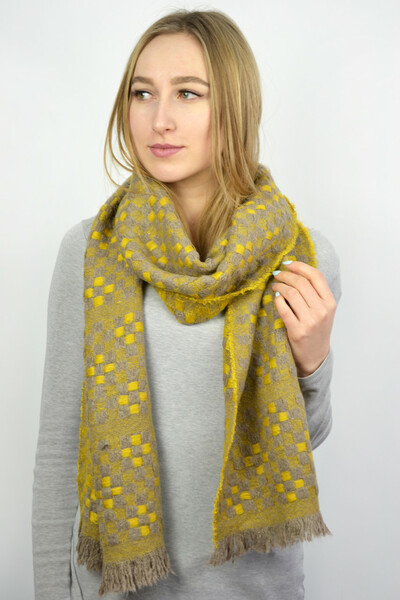 Об'ємний теплий шарф - in top серед аксесуарів! Щільна дихаюча тканина, оригінальний дизайн з дрібними квадратами, краї прикрашені бахромою. Цей шарф подарує відчуття комфорту і затишку, а ще захистить від морозу. Як тобі?