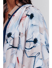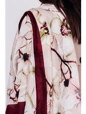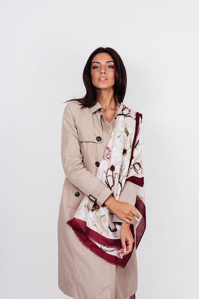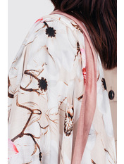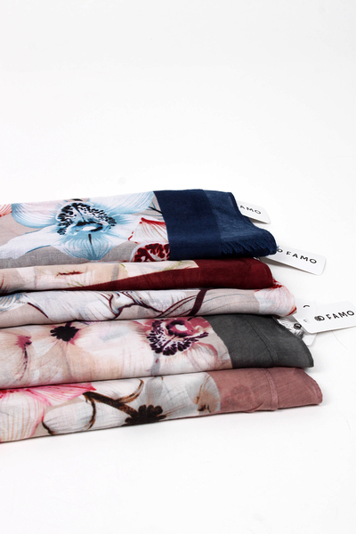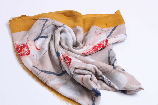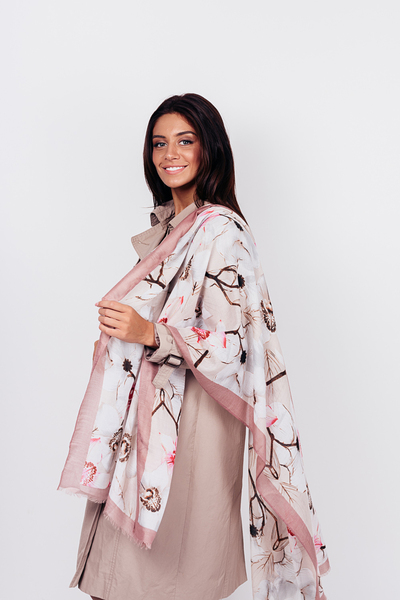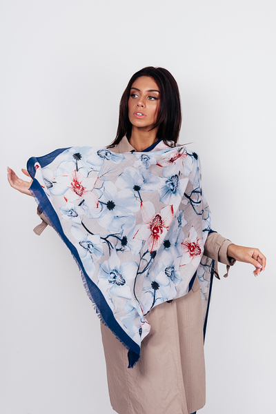 • Легкий шарф з квітковим принтом. Гладка текстура, великі квіти з контрастними лініями по периметру, необроблена кромка. Аксесуар стане чудовим доповненням до джинсовок, кейпів, тренчів і пальт. Цей шарф потрібен твоєму гардеробу!