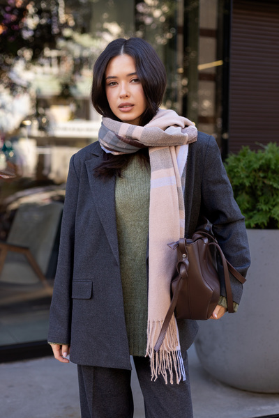 • Оптимальний розмір шарфа дозволяє експериментувати з різними способами зав'язування, створюючи унікальні образи.