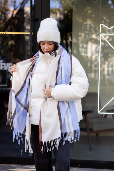 • Шарф SH-102245 Молочний Молочний + блакитний