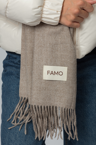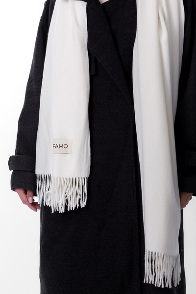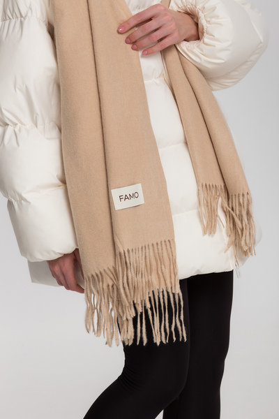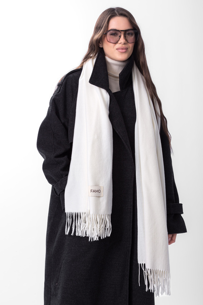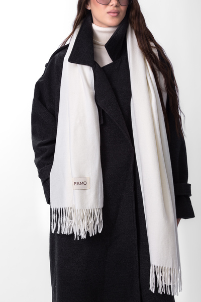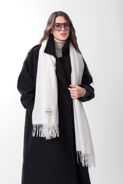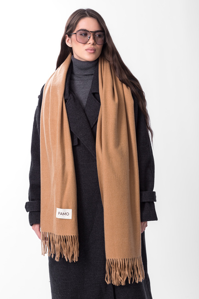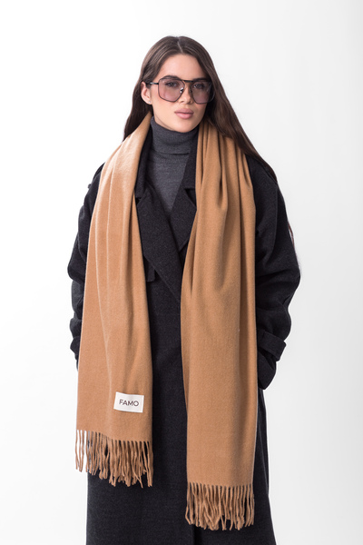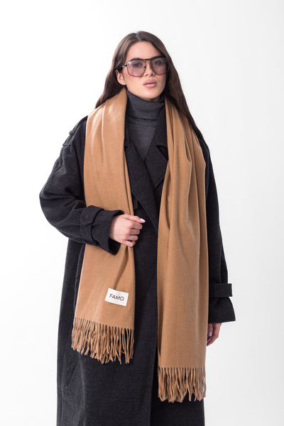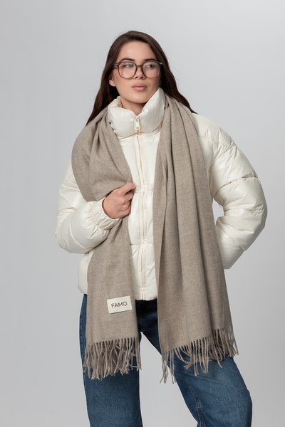 Цей елегантний аксесуар поєднує в собі стиль, комфорт та неперевершену м'якість. Шарф виконаний з високоякісного кашеміру, що робить його приємним на дотик і дуже теплим. Однотонний бежевий колір дозволяє легко комбінувати його з різними елементами одягу, створюючи різноманітні образи.