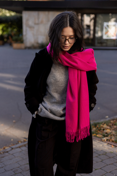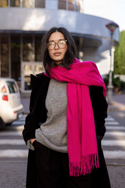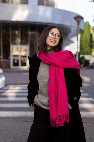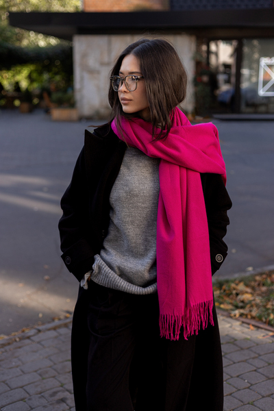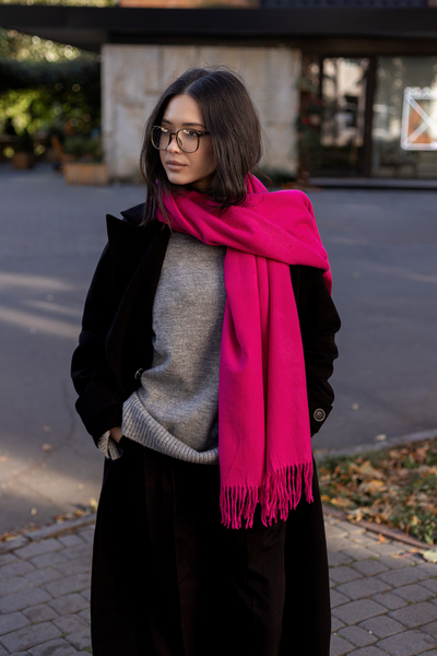 - Довжина шарфа дозволяє носити його різними способами – обгорнути навколо шиї, носити вільно або використовувати як накидку.