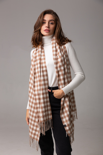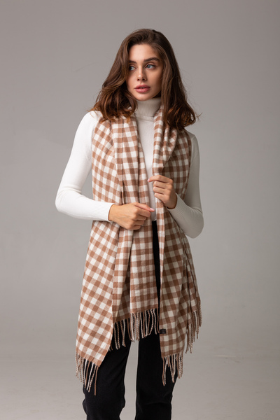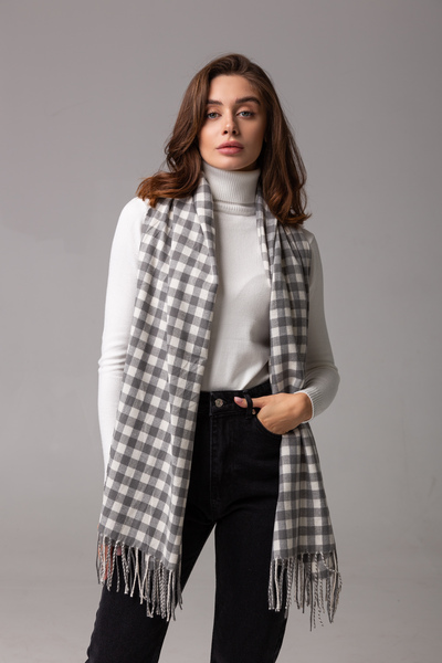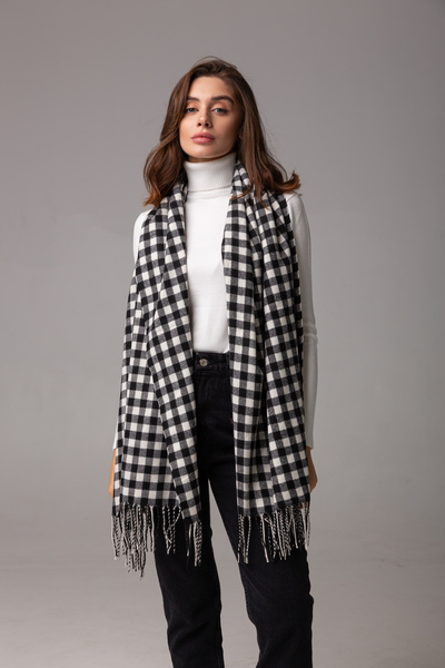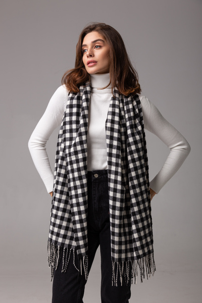 Шарф в клітку – це проста базова річ, яку можна спокійно вносити в список обов'язкових покупок на період міжсезоння і зими. Об'ємний і теплий шарф не тільки захищає від холоду, але і є одним з основних аксесуарів, який здатний розбавити образ і зробити його більш цікавим. Якщо говорити про верхній одяг, шарфи в клітинку чудово поєднуються не тільки з елегантними пальто, але і з косухами, бомберами, парками і куртками без капюшона. Такий шарф можна надягти під верхній одяг, повністю закривши шию. До речі, навіть якщо ви одягнете шапку, то образ все одно буде гармонійним.