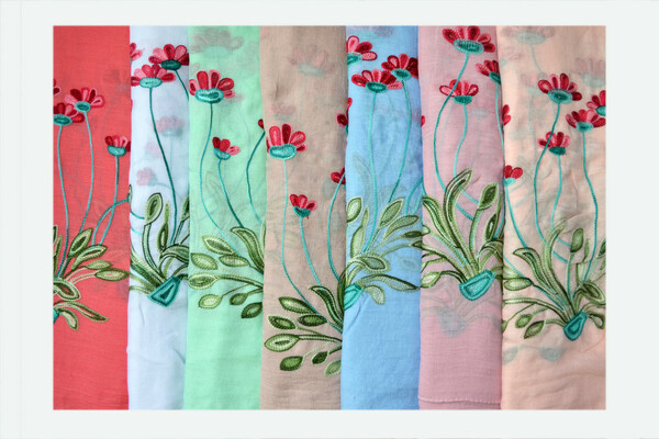 Легкий шарф - must have весняного образу! Однотонний дизайн з контрастними вишитими квітами. Напівпрозорий м'який матеріал, який збереже тепло і захистить від прохолодного вітру. У декількох кольорах. Обирай!